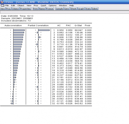 El correlograma de la transformación logarítmica de ambas series también sugiere la conveniencia de tomar al menos una diferencia para conseguir que la serie sea estacionaria.
