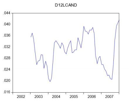 Primeras diferencias del logaritmo del IPC en la Comunidad de Andalucía